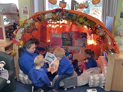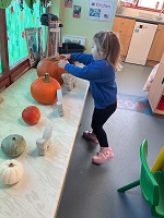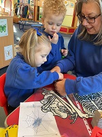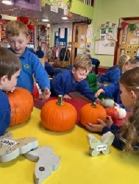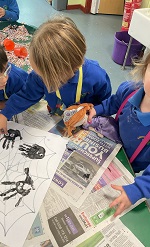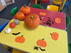 Preschool has been all about the pumpkins, skeletons, spiders, witches and bats and the children have loved it. They've enjoyed lots of activities with pumpkins from talking about their size to pulling out the insides and talking about their texture. They've made witches hats, spider's webs and even made our very own skeleton. A very spooky week had by all!