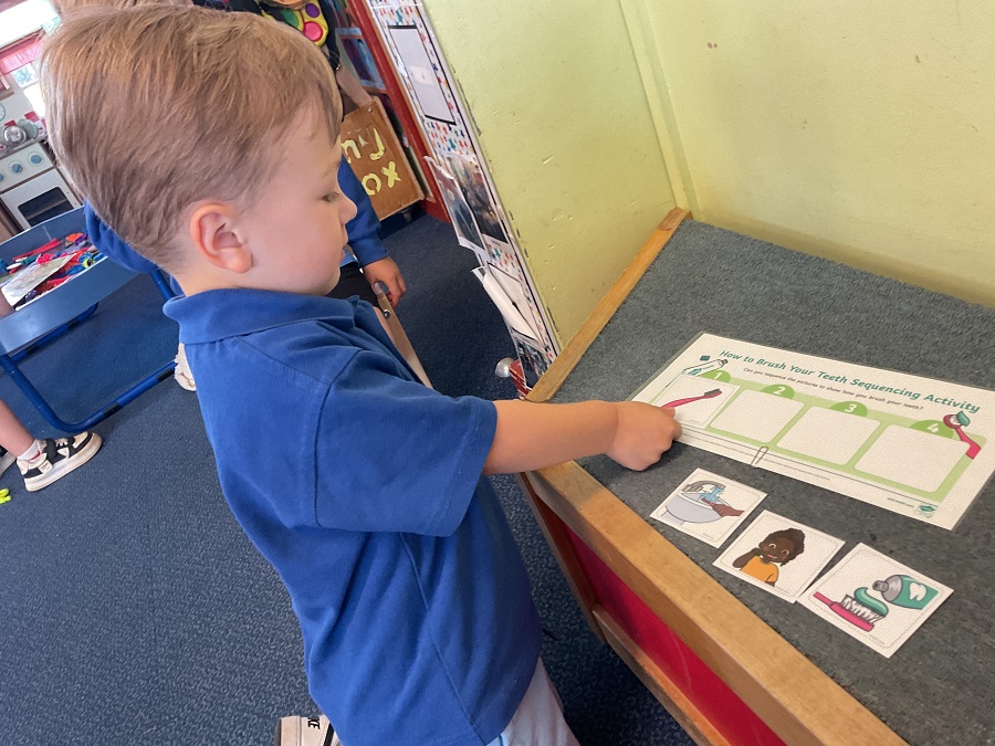 We have been doing lots of activities about healthy eating and looking after our teeth. We have been singing songs, colouring, and playing the memory game.